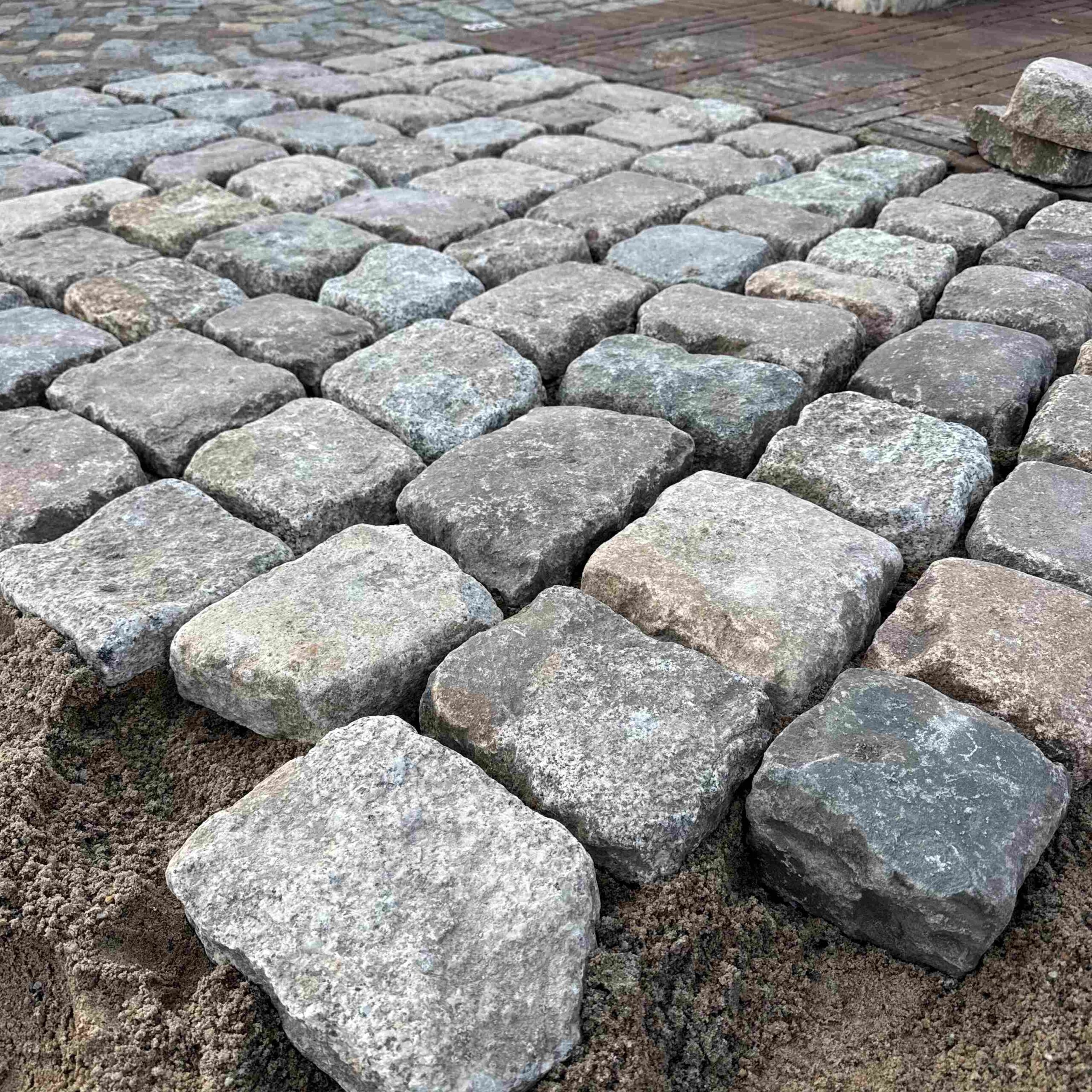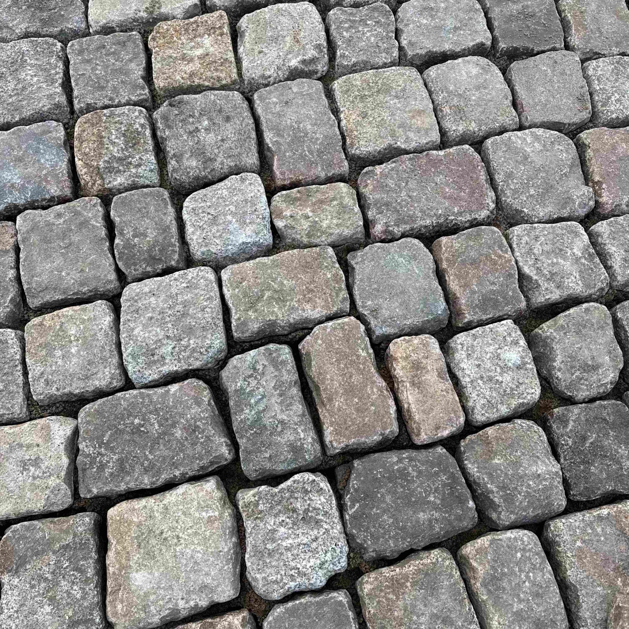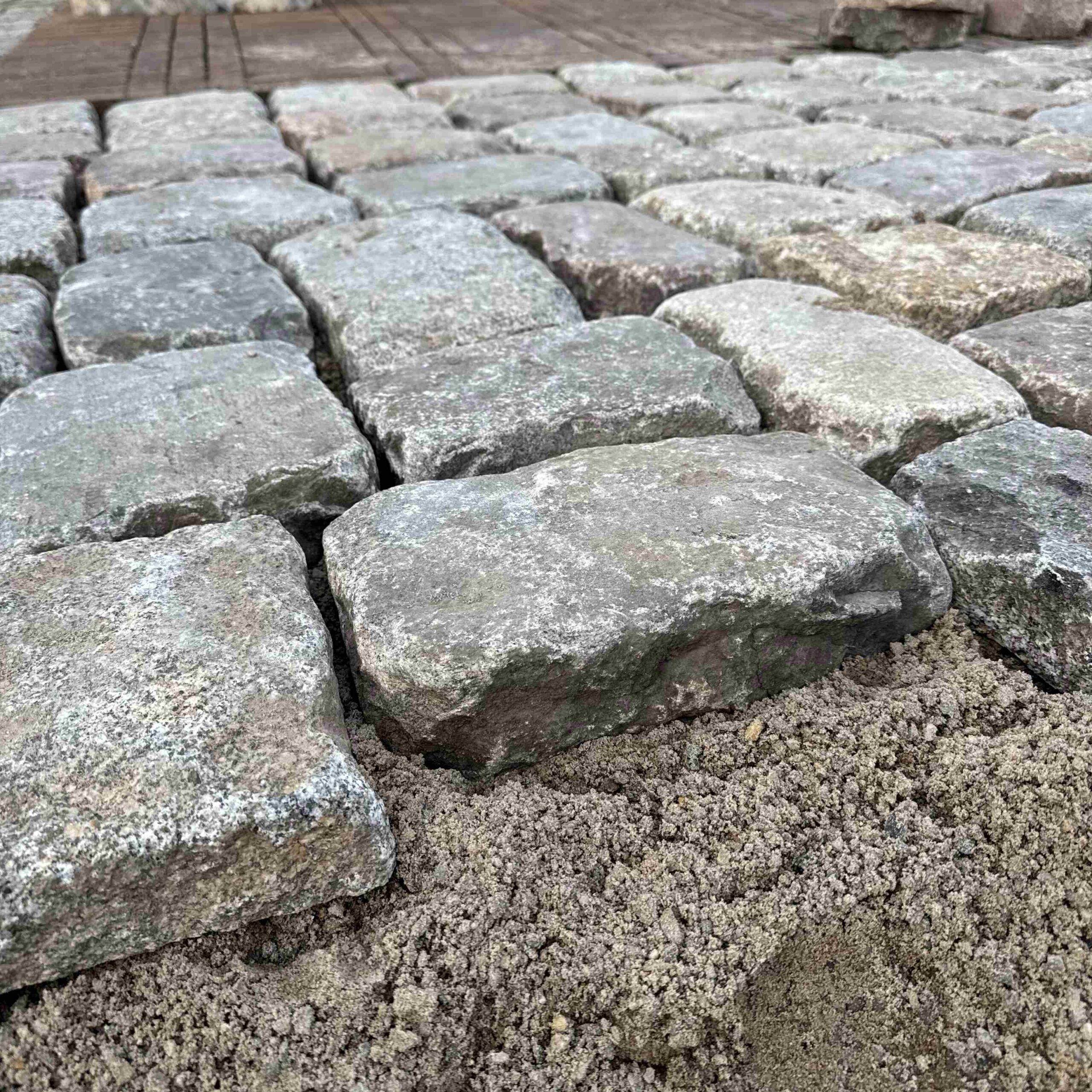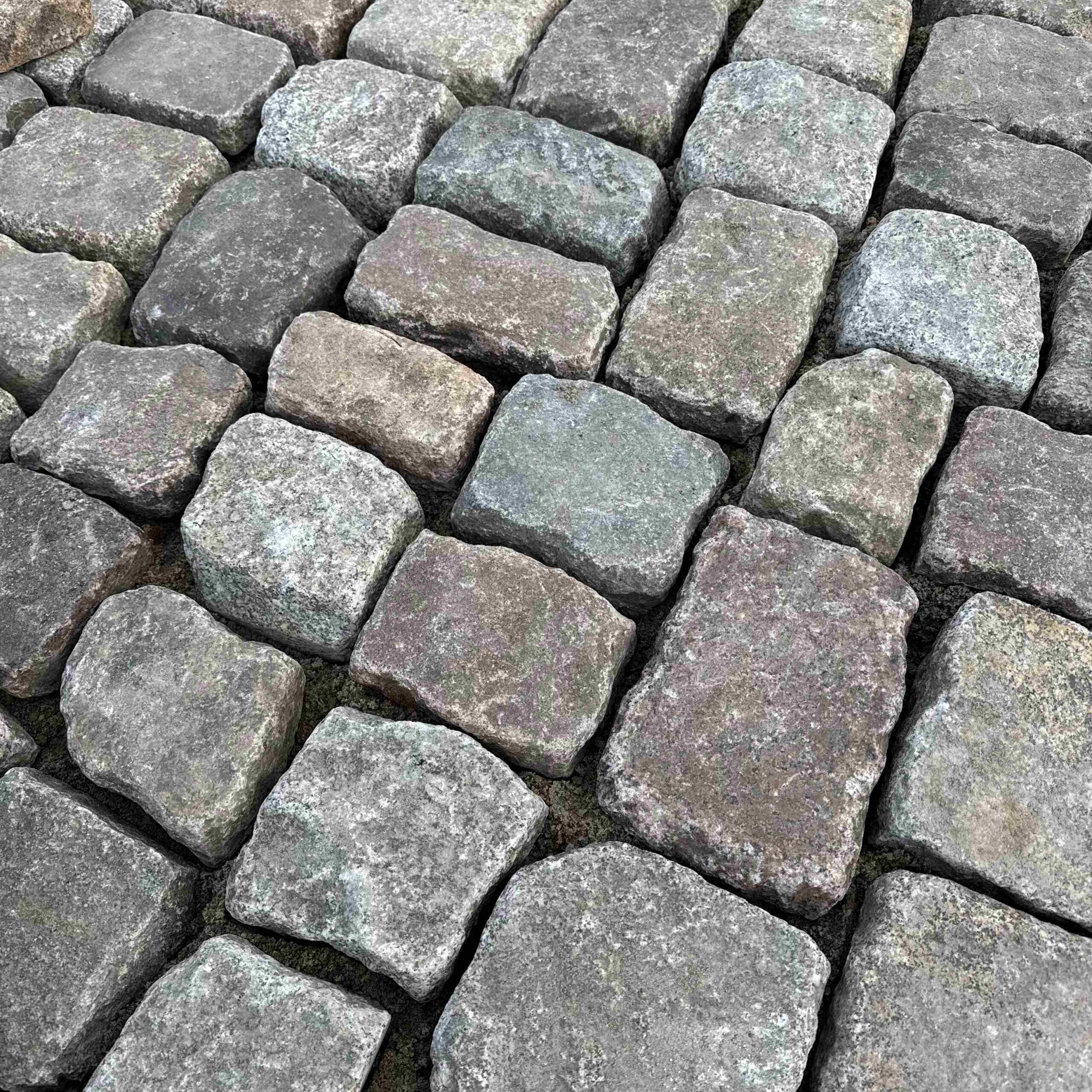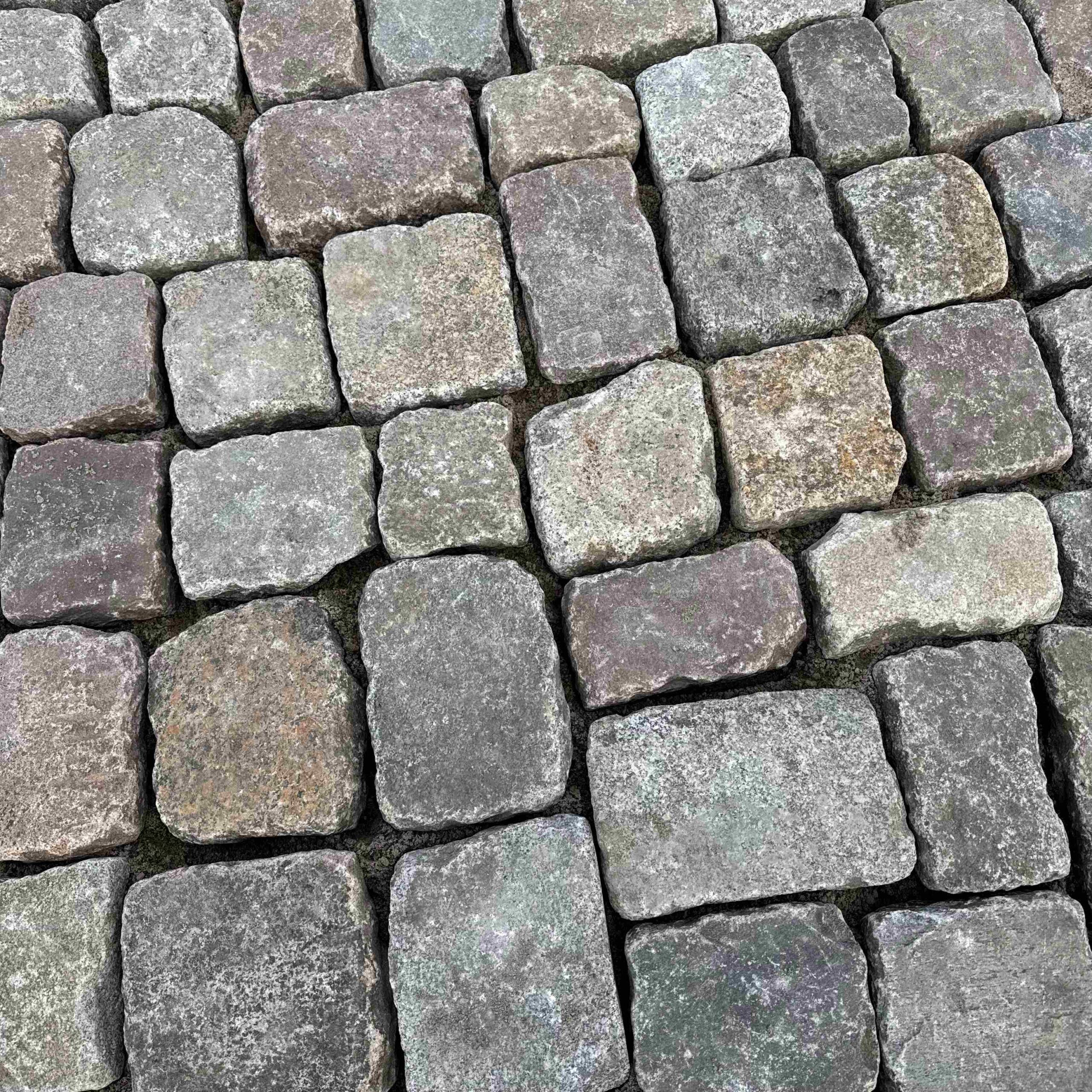 Edel Granit Pflasterplatte 3-9 cm grau-bunt regelmäßig bis unregelmäßig