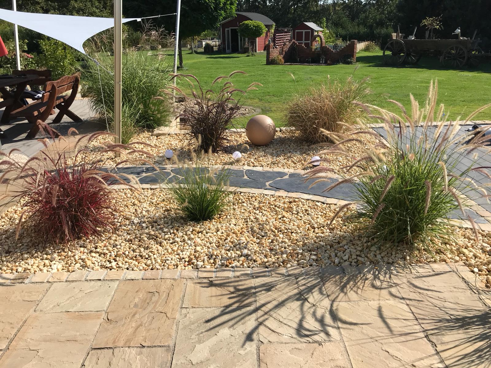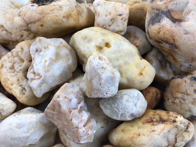 Der natürlich gerundete Zierkies Amarillo Cuarzo hat eine besonders farbige Ausstrahlung. Der gelb-orangene Farbton passt hervorragend zu diversen anderen Natursteinen wie z.B. Sandstein, Travertin oder Granit.
