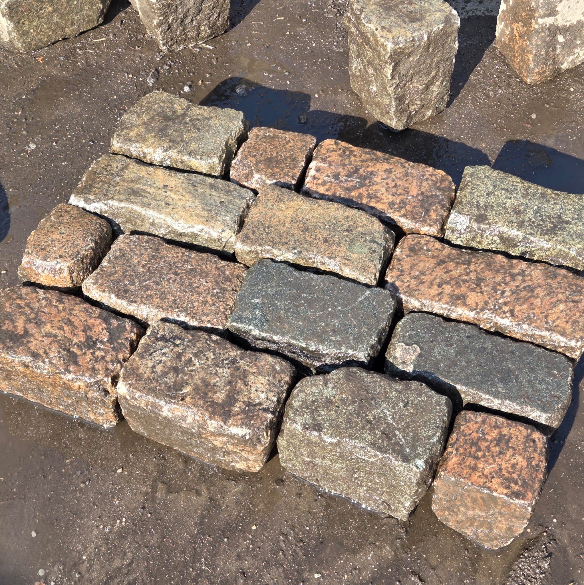 Gebrauchtes Granit/Gneis Großpflaster 13-25 cm Reihenpflaster bunt