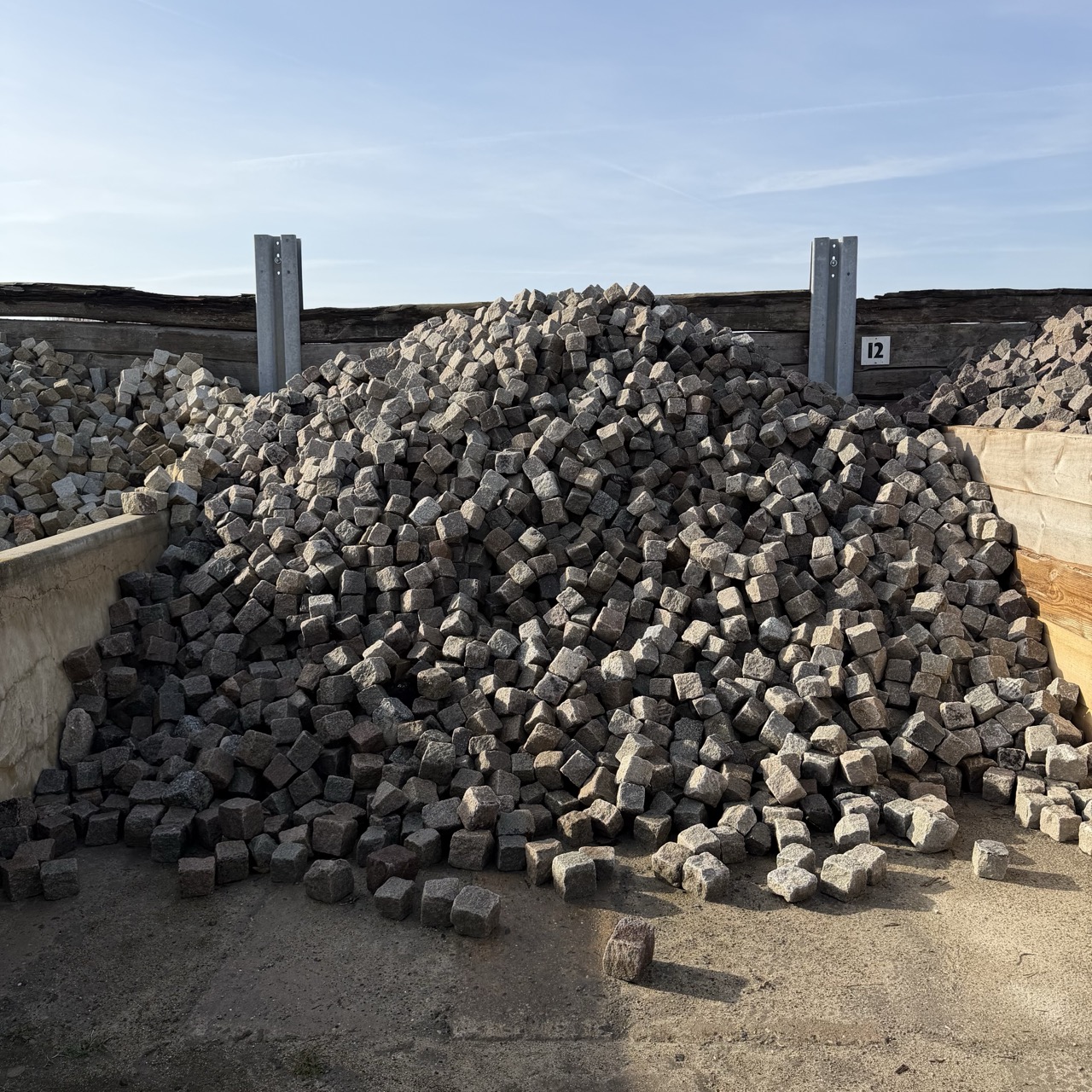 Produktinformationen "Gebrauchtes Granit Kleinpflaster 8-11 cm reihenfähig grau-rötlich"