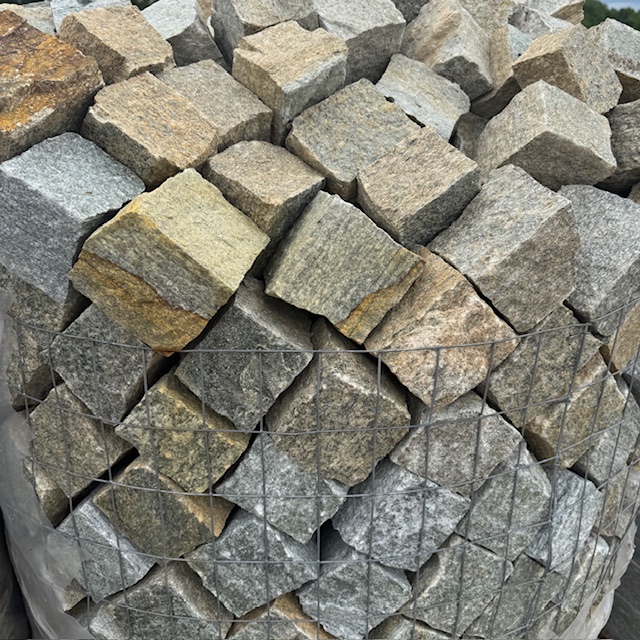 Gneis Kleinpflaster Torino 8-12 cm gespalten grau-bunt