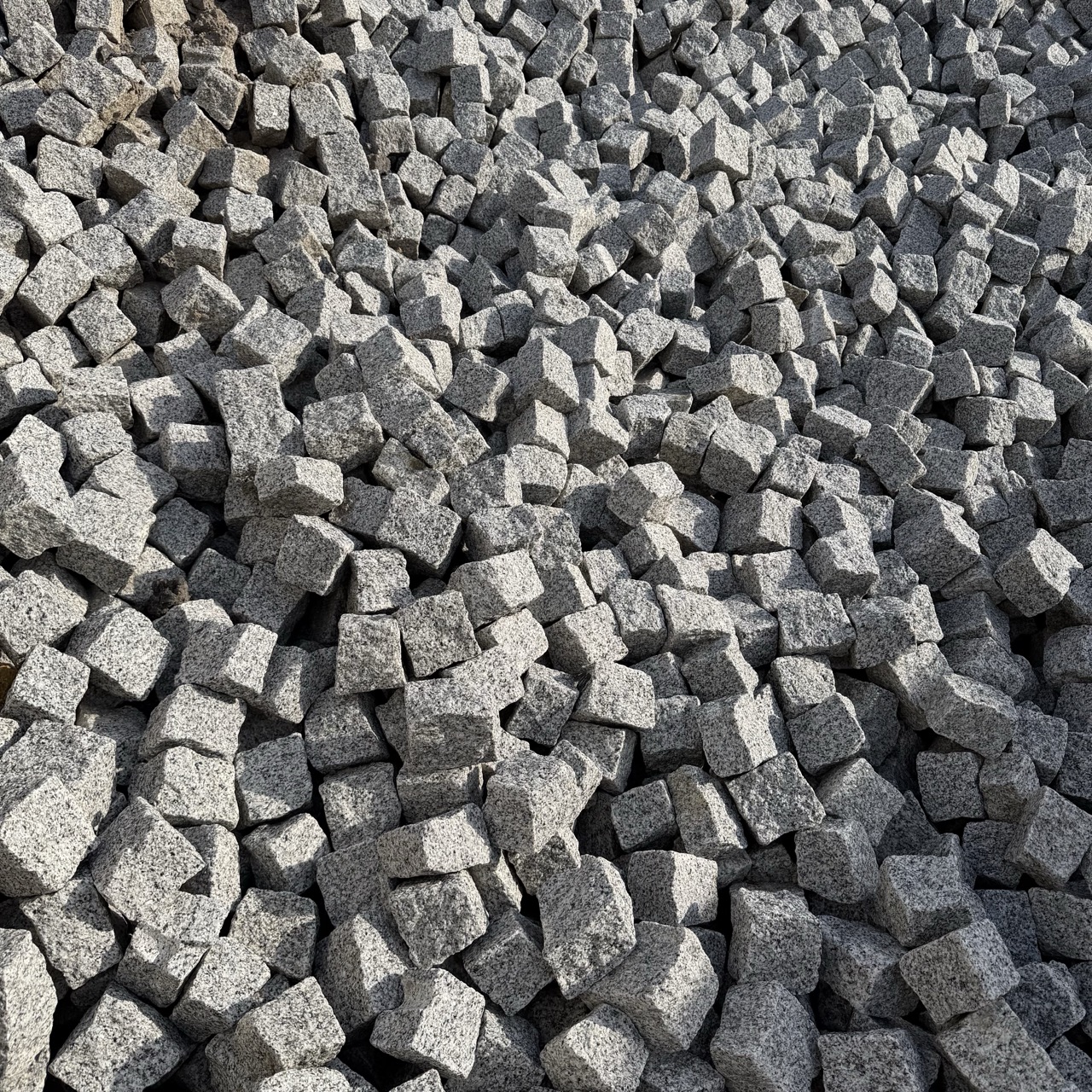Neues Granit Mosaikpflaster aus Box N 15 hat eine gleichmäßige feinkörnig und hellgraue Färbung. Die Pflastersteine eignen sich hervorragend zum Pflastern von Gehwegen oder Podesten.