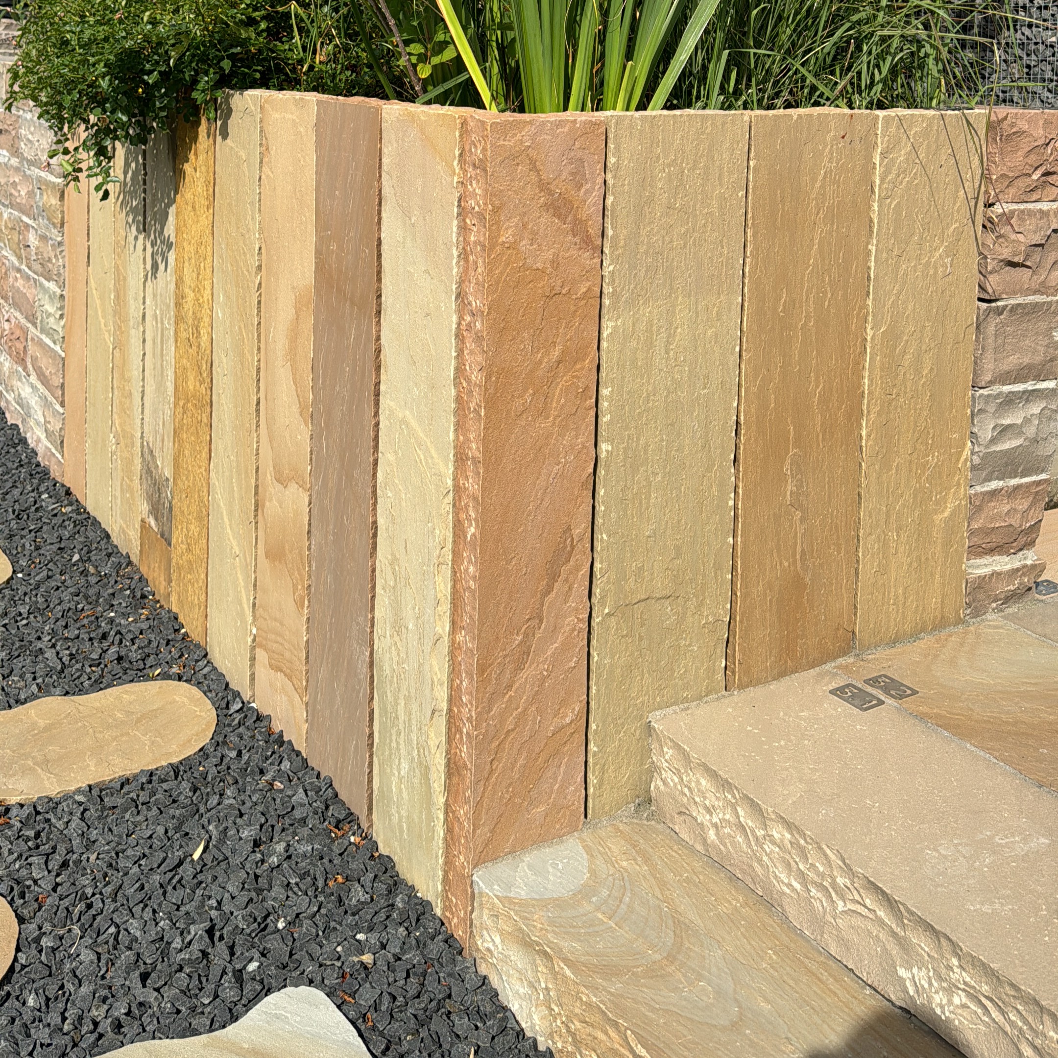 Quarz-Sand Kantenstein Toskana bunt 8x12x50 cm Oberfläche spaltrauh, Kanten handbekantet