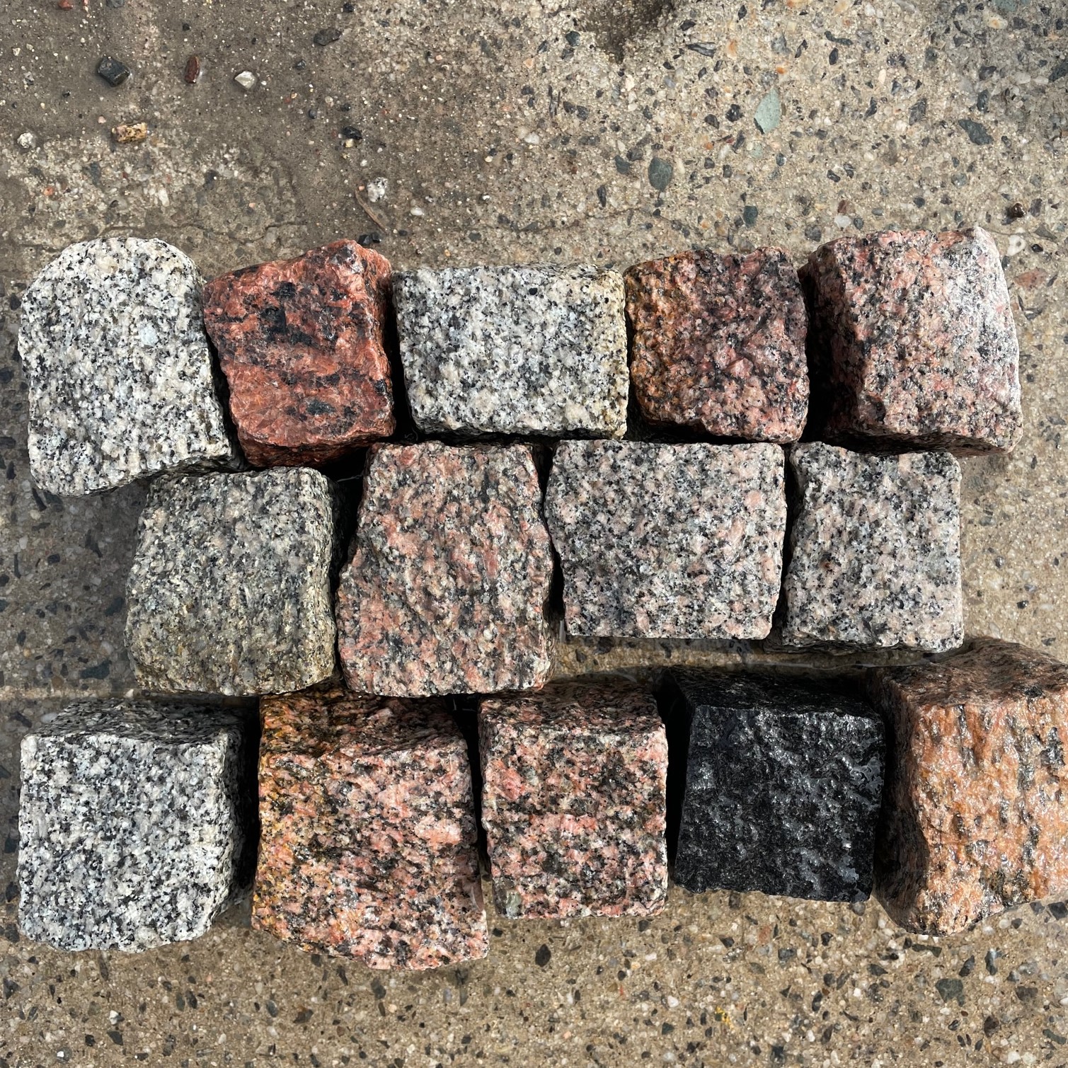 Neues Granit Mosaikpflaster 4-6 cm rötlich-bunt