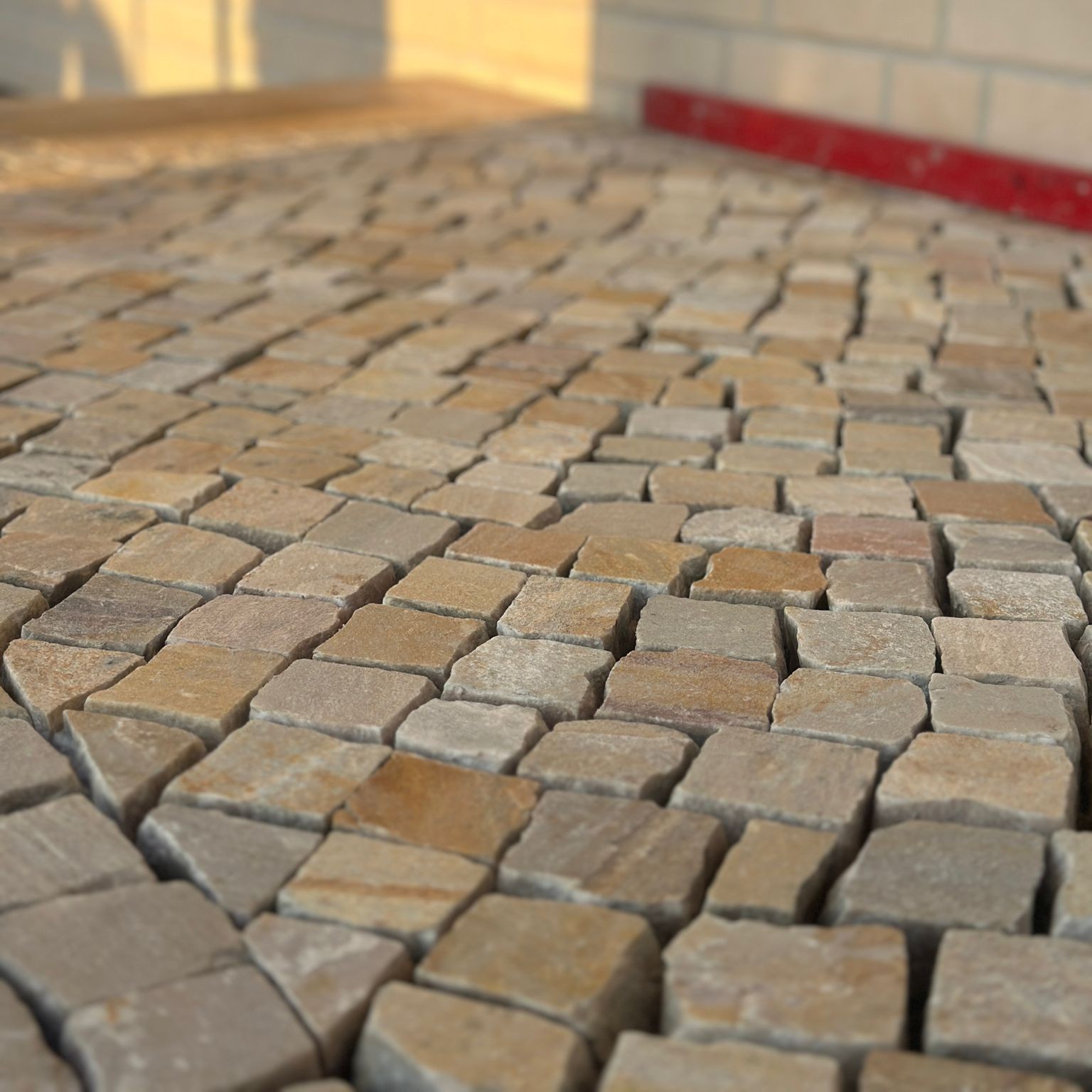 Neues Quarzit Mosaikpflaster 4-6 cm gelb-bunt